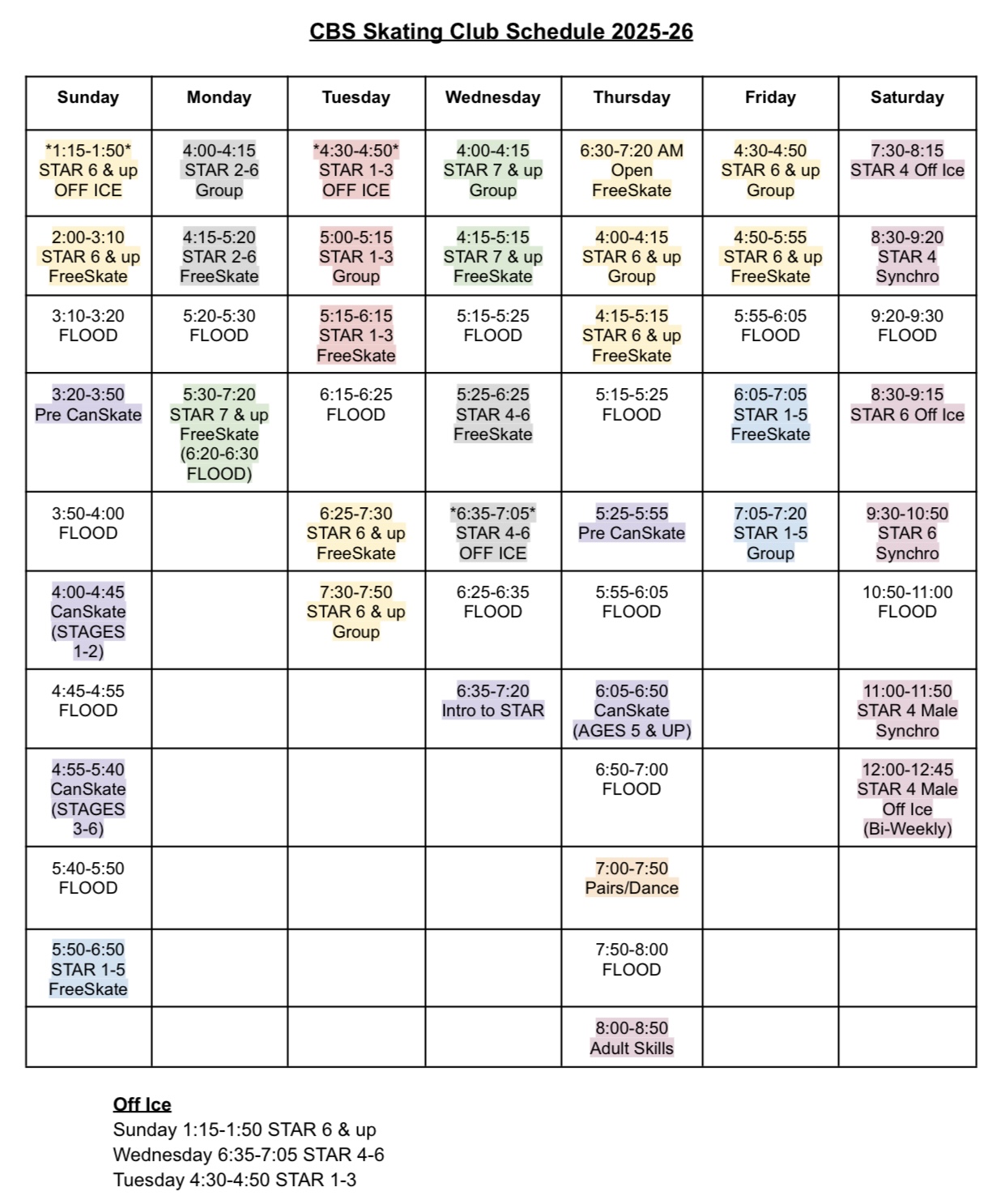 Please review the schedule carefully and reach out if you have any questions. We look forward to another fantastic season on the ice!