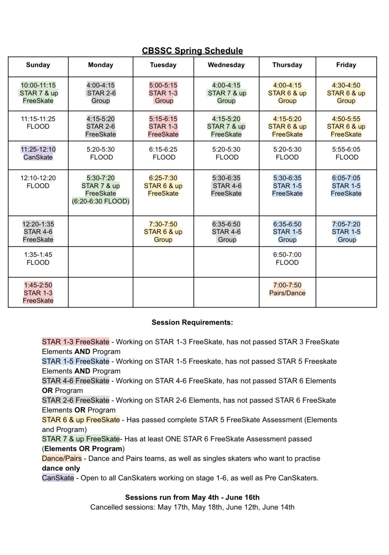 We are pleased to announce the schedule for our upcoming Spring Skating Program, with registration coming soon!
